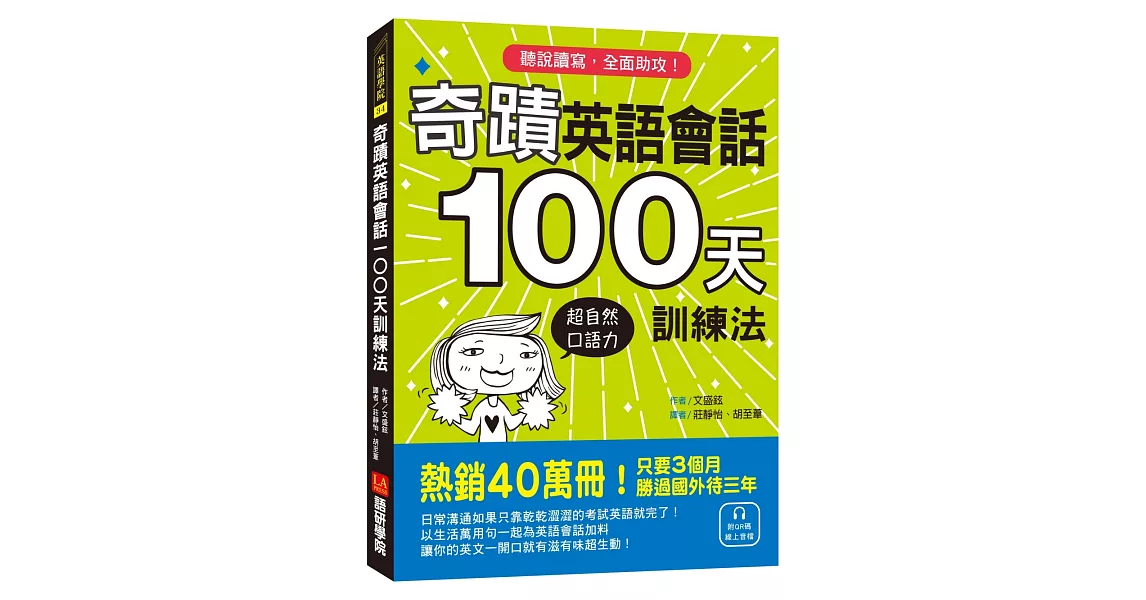博客來-奇蹟英語會話100天訓練法:熱銷40萬冊!只要3個月,立即擁有超自然口語力,聽說讀寫全面助攻!(附QR碼線上音檔)訂購網址: https://www.books.com.tw/exep/assp.php/87926/products/0010827912?utm_source=87926&utm_medium=ap-books&utm_content=recommend&utm_campaign=ap-201905