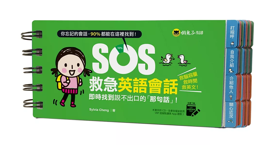 商品描述: 書名:SOS救急英語會話:即時找到說不出口的「那句話」!(免費附贈虛擬點讀筆APP),語言:繁體中文,ISBN:9789864071135,頁數:192,出版社:懶鬼子英日語,作者:Sylvia Cheng,出版日期:2019/03/06,類別:語言學習