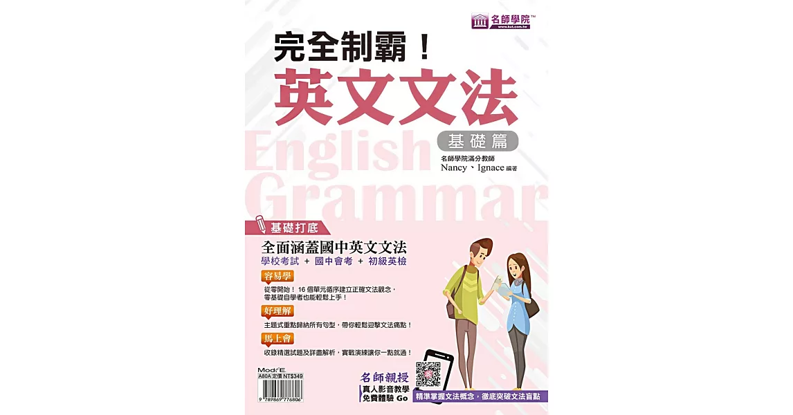 名師學院特聘英文人氣小天后Nancy老師與氣質文青Ignace老師精心編纂講義,將國中程度文法分為16個主題,架構清楚,鉅細靡遺又易懂。從基礎概念完整講起,零基礎自學者也能輕鬆上手!