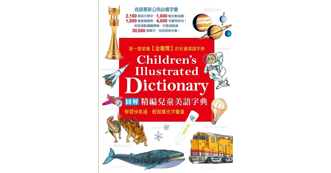 全國第一套榮獲金鼎獎的兒童美語字典,以簡單、易讀的方式呈現,激發學習動機;精美插圖,輔助理解,強化單字記憶;點讀筆引導學習,輕鬆有趣,讓孩子愛不釋手,有效擴充字彙量。